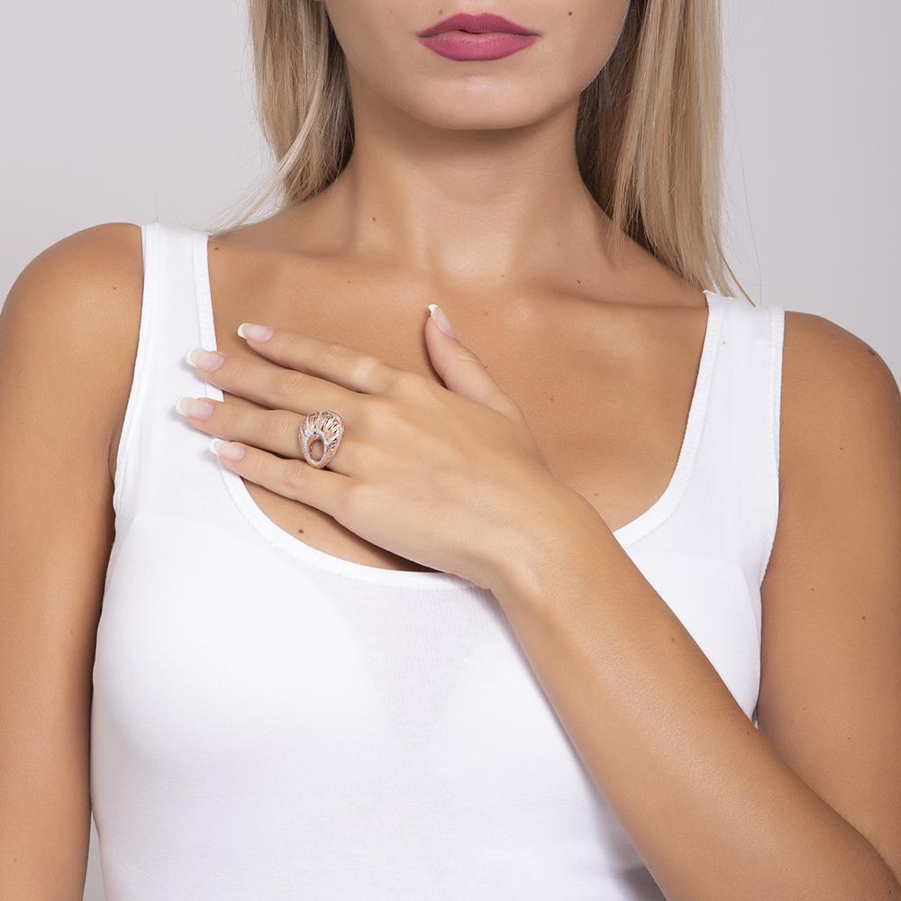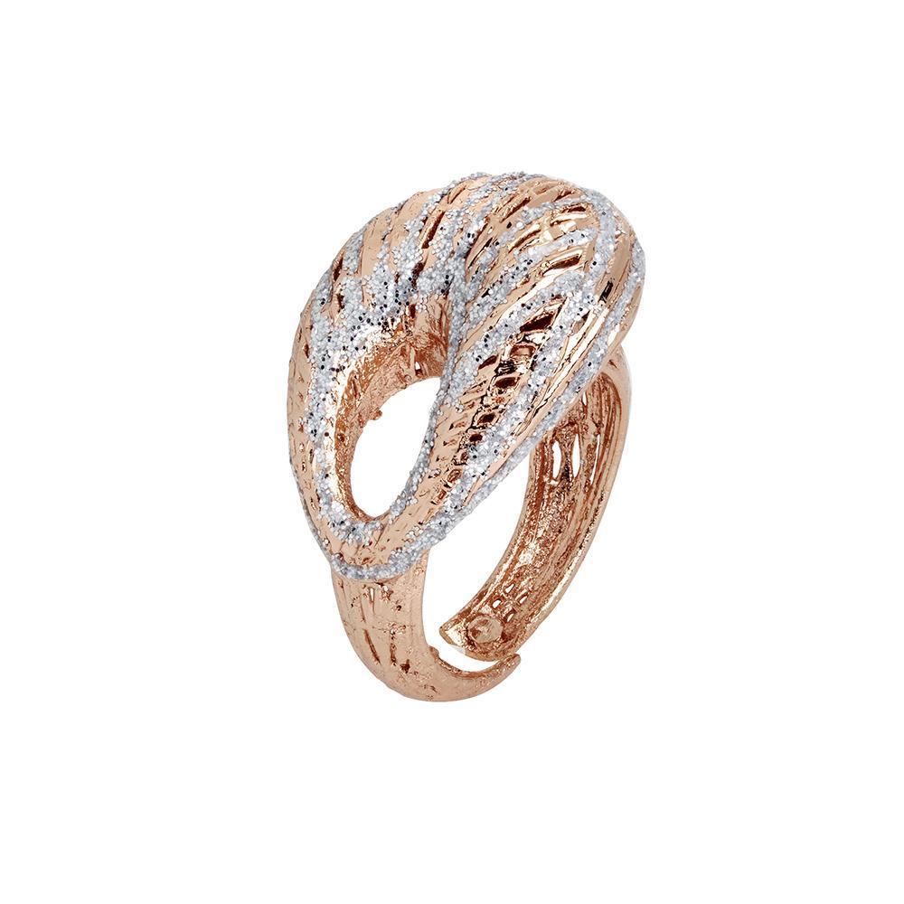 Anillo bañado en oro rosa realizado mediante electrofusión y decorado con purpurina plateada