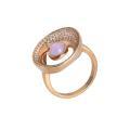 Anillo eclipse lunar bañado en oro rosa con pavé de circonitas y cristal color lavanda.