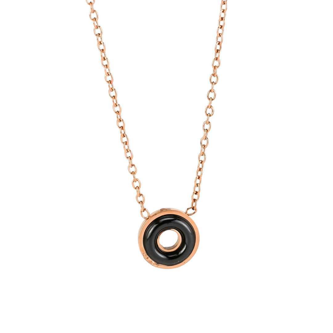 Collar de acero rodiado bañado en oro osa, colgante decorativo con forma de rosquilla en cerámica de color negro.