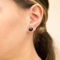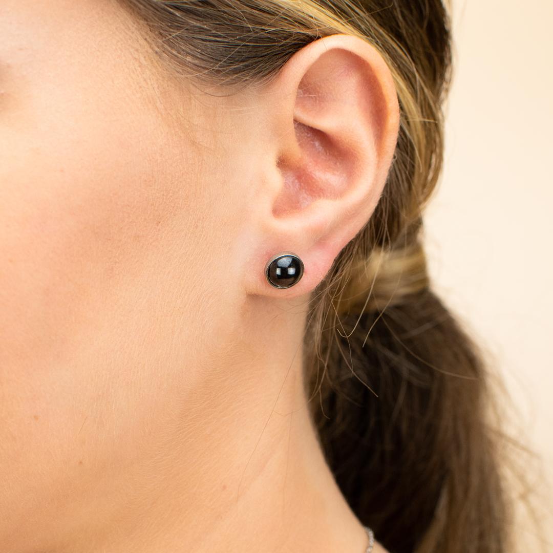 Pendientes de botón en acero rodiado, forma redonda en cerámica de color negro.