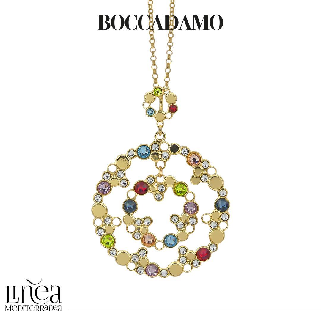 Collar bañado en oro con colgante concéntrico y cristales de colores