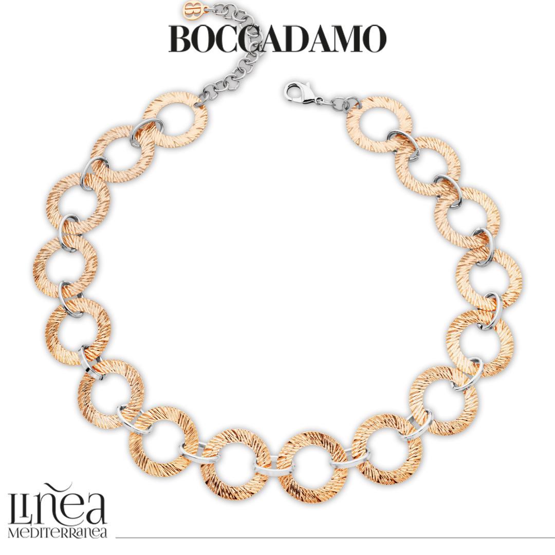 Collar rodiado con eslabones circulares bañados en oro rosa con efecto diamantado.