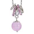 Collar de bronce rodiado con colgante de jade lila y pasadores laterales con pavé de strass rosa (longitud 38 cm extensible hasta 43 cm).