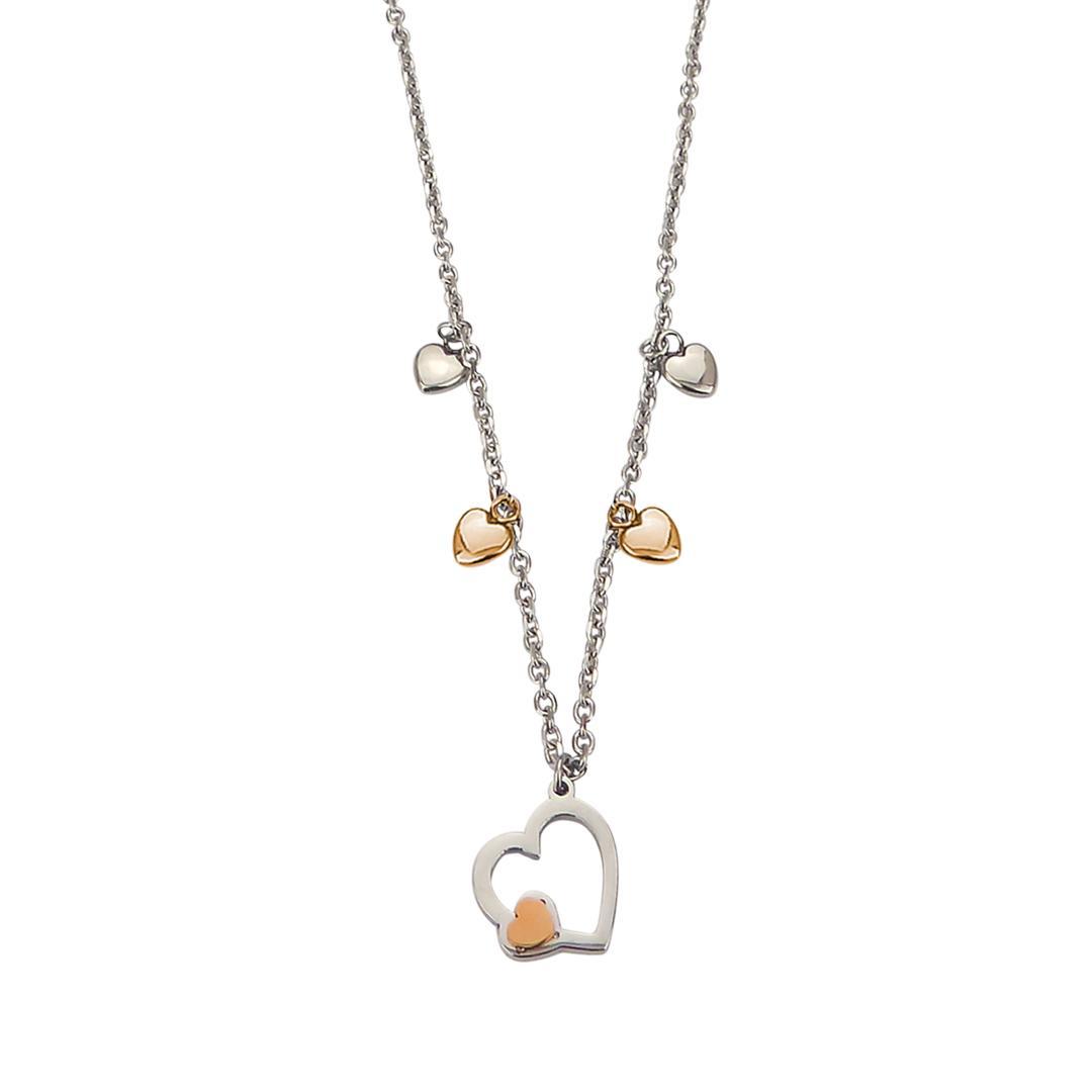 Collar rodiado con charms en forma de corazón bicolor.