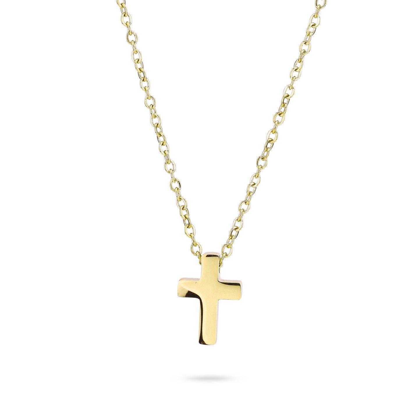 Collar de acero bañado en oro amarillo con colgante de cruz