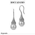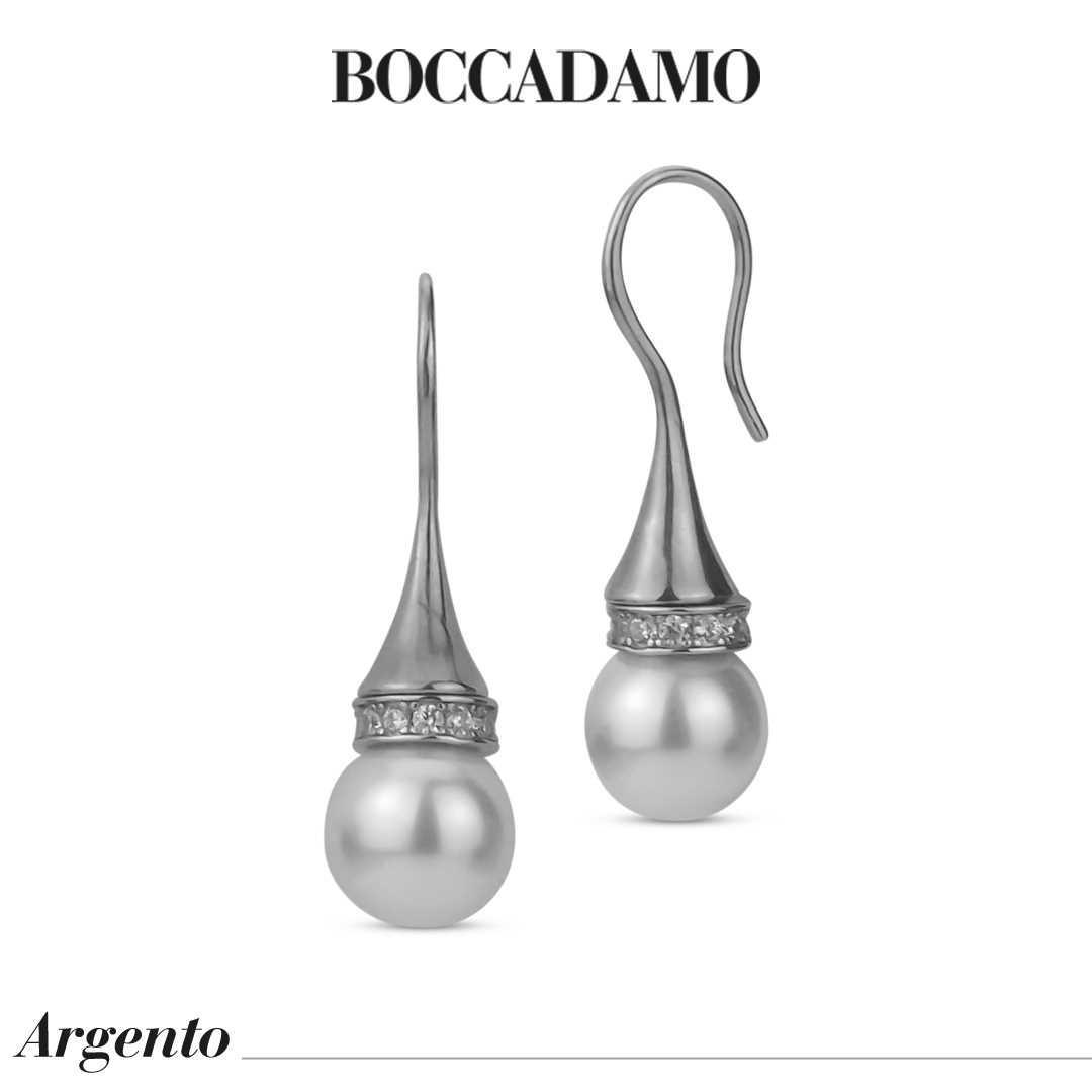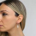 Pendientes de gancho en plata con decoración de circonitas y perla blanca.