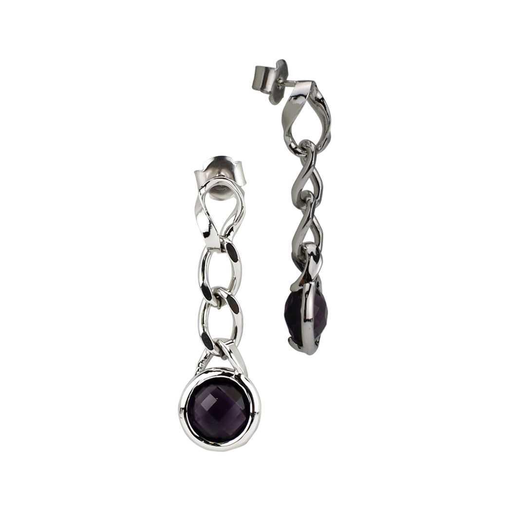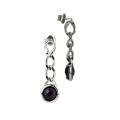 Pendientes largos de bronce rodiado con eslabones groumette y cristal color amatista.