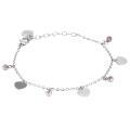 Pulsera con colgantes de cristales amatista clara y corazones.