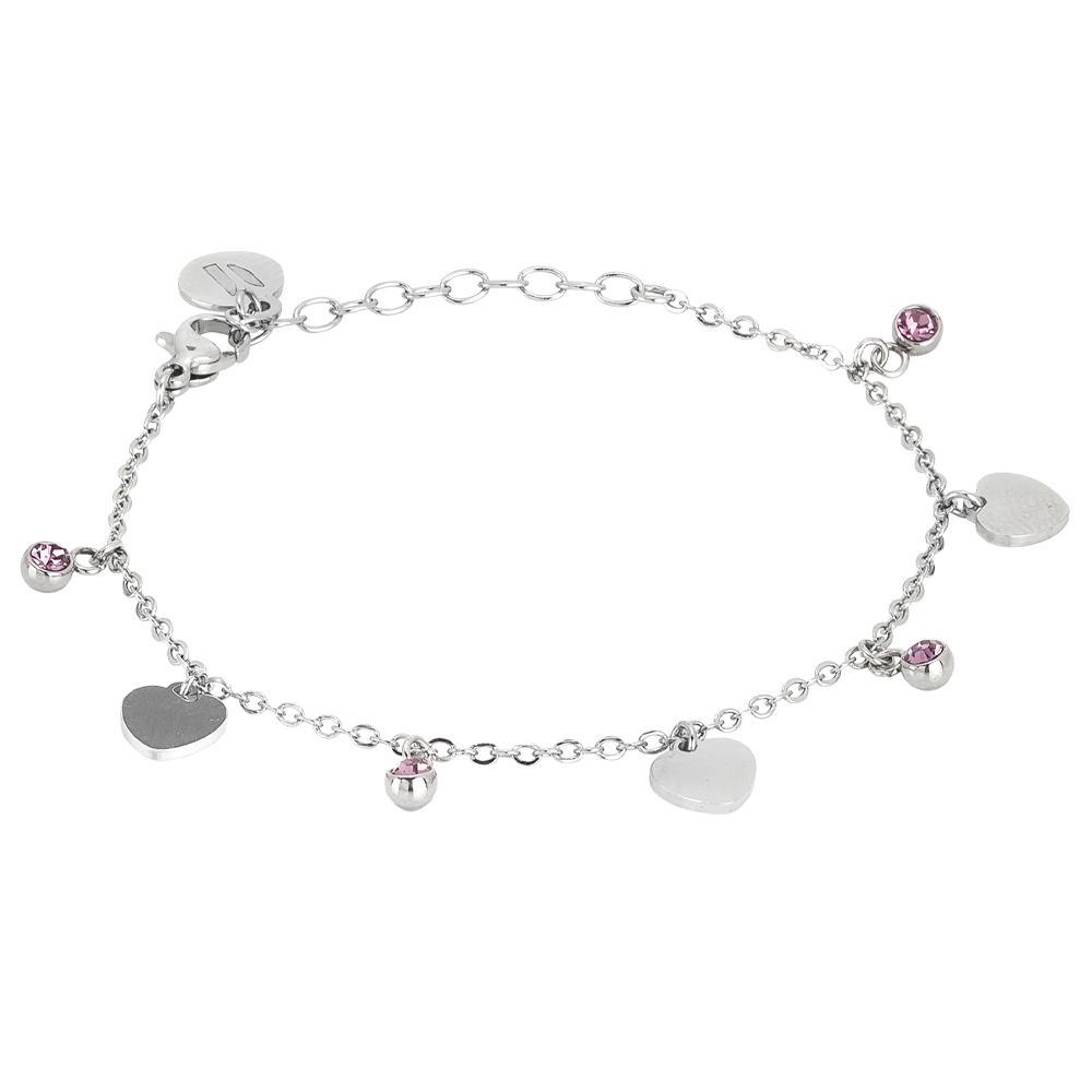 Pulsera con cristales light amatista y corazones