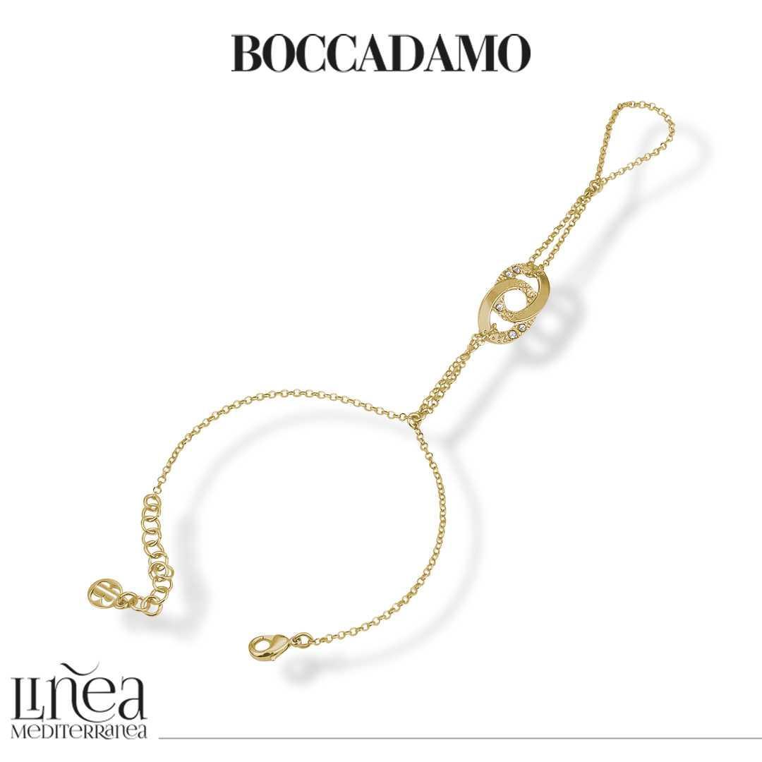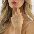 Pulsera de cadena con anillo bañada en oro amarillo, decoración compuesta por eslabones ovalados entrelazados y cristales cristal.