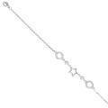 Pulsera de plata rodiada, pasador central en forma de estrella y pasadores laterales circulares con circonitas (longitud 18 cm, extensible hasta 21 cm).