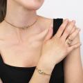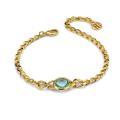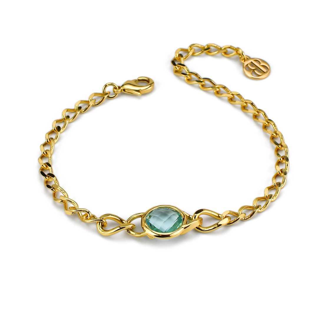Pulsera groumette de bronce bañado en oro amarillo con cristal de agua marina intercalado